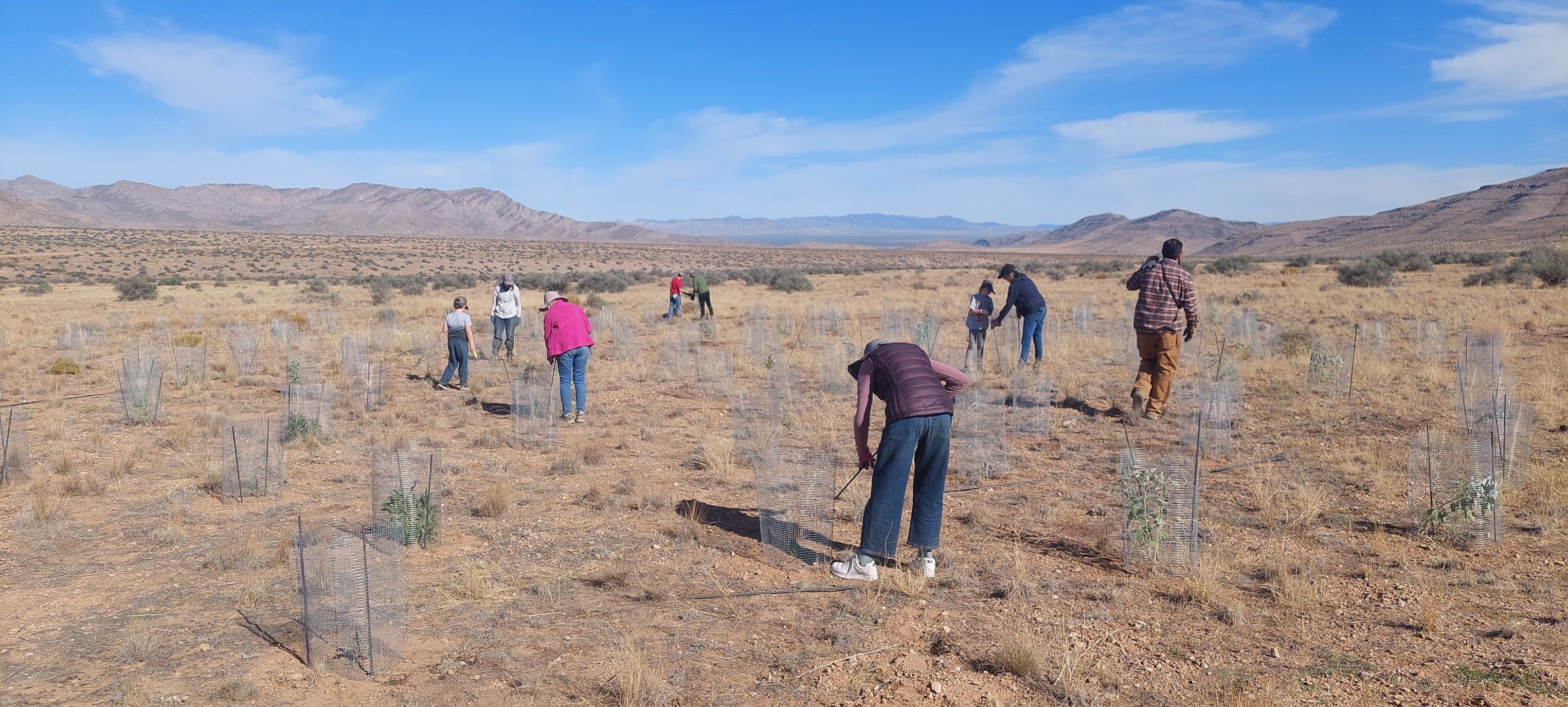 The Friends of Nevada Wilderness and the Nevada Department of Wildlife will be conducting restoration in the form of a Native Planting Event to establish native perennials following a wildfire. Activities will center in an area burned by wildfire in the Mormon Mountains of Lincoln county. Please arrive at the restoration site at 9:00 am for volunteer registration and a safety briefing, the event will end around 1:00 pm. The restoration site is located along Carp-Elgin Road (a dirt road) approximately and hour and a half from Las Vegas. Cell phone service is spotty in the area. All materials and tools will be provided, but volunteers are responsible for bringing personal gear (e.g., work gloves, sturdy boots, sunglasses, sunscreen, food, water, etc.). Please check the weather conditions prior to the event and come prepared. Driving directions can be found at Mormon Mountains 2024 #9 Restoration Flyer.